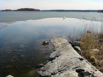 Last weekend, the ice disappeared almost completely – there is just a little of it left in the marina and in the inner, narrow creeks east and west of it. The ferries can sail the shorter course again, through the shipping channel near the mainland that was closed during the coldest winter months, so the ships don’t have to take the long turn around the eastern part of the fjord any longer. This has been a long winter!